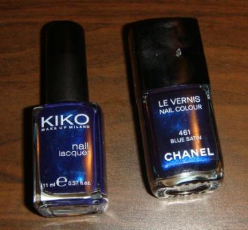 Mai jos, veti vedea una dintre ojele mele preferate, Le Vernis Chanel – 461 Blue Satin. Am purtat-o foarte mult iarna trecuta si, odata cu venirea toameni, m-am reintors la ea. De curand, am gasit o alta oja care seamana izbitor cu cea de la Chanel. Brand-ul este KIKO Make-Up Milano, italienesc si l-am descoperit in vacanta, in Sicilia. Inca nu am incercat-o, imediat ce o incerc va voi povesti despre ea, daca este rezistenta, suficient de intensa etc.